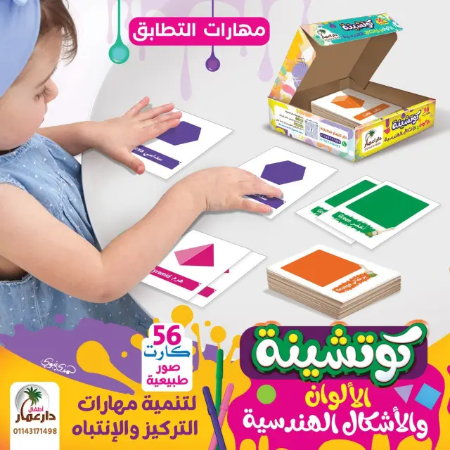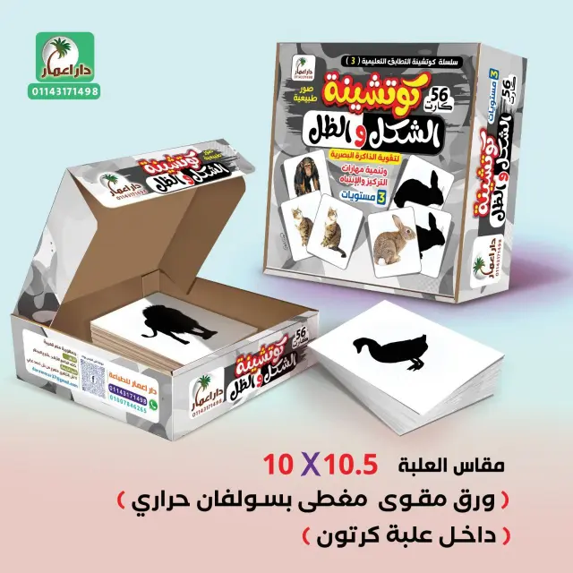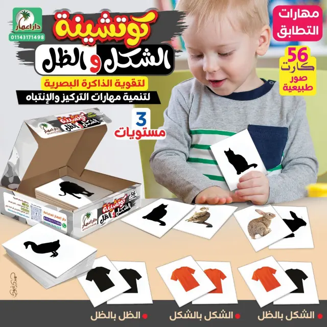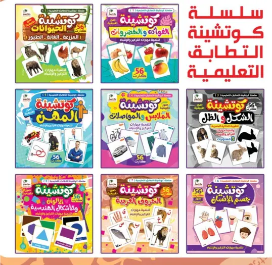 كما أن كل شكل داخل الكوتشينة مكرر مرتين، مما يساعد الطفل على التعرف على الصور بسهولة ثم مطابقتها خطوة بخطوة.