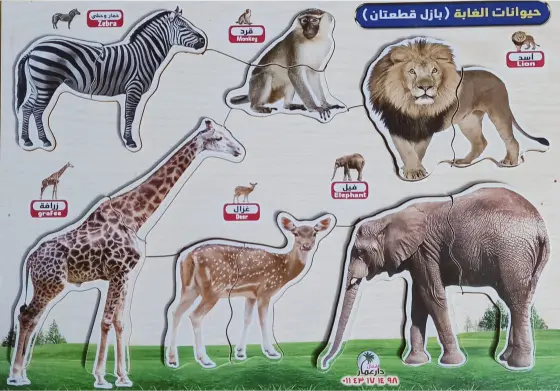 يشمل: أسد – قرد – حمار وحشي – فيل – غزال – زرافة