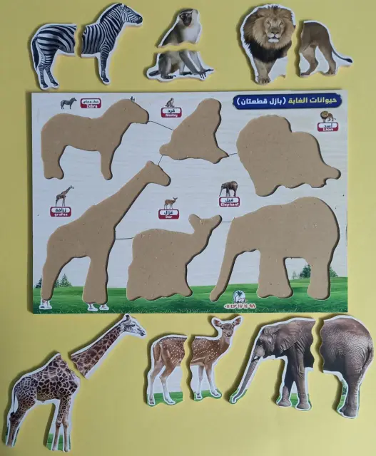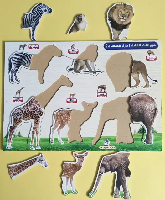 بازل حيوانات الغابة الخشبي المكوّن من قطعتين يُعد مرحلة تعليمية متقدمة بعد بازل القطعة الواحدة