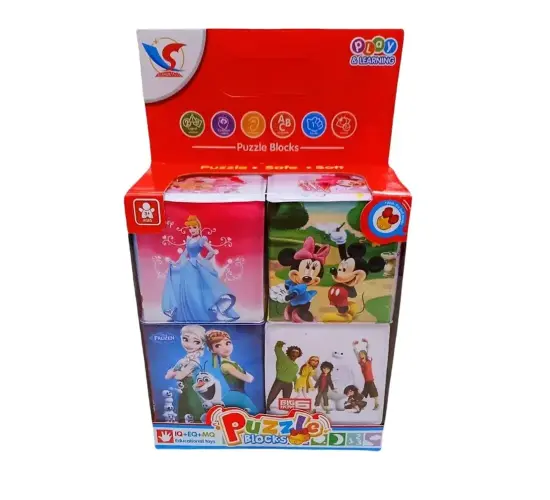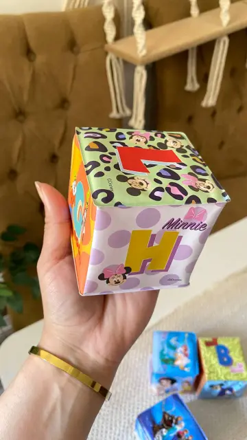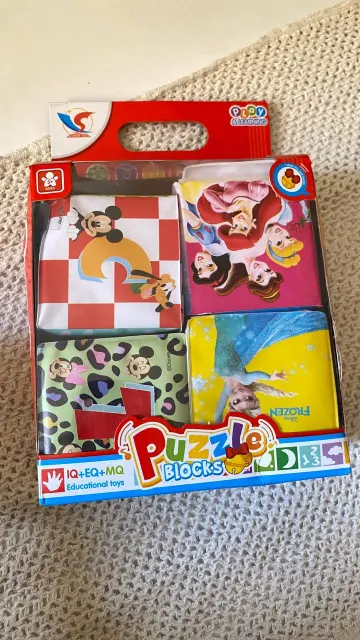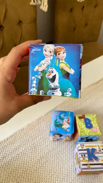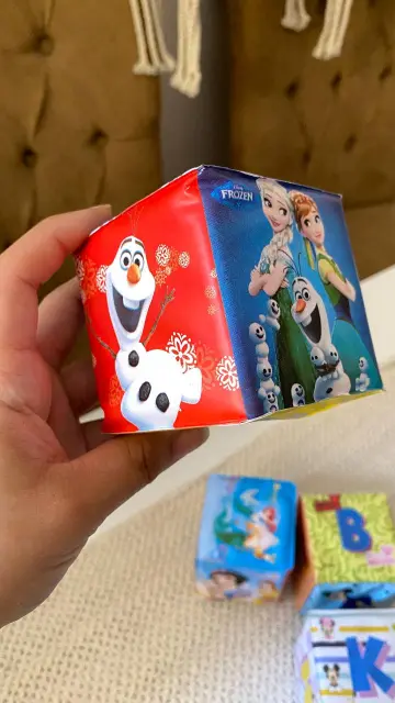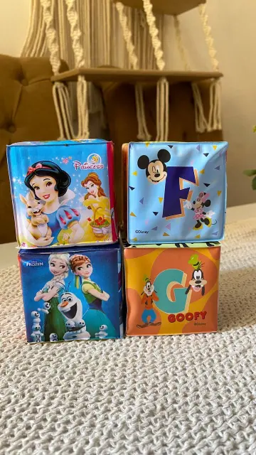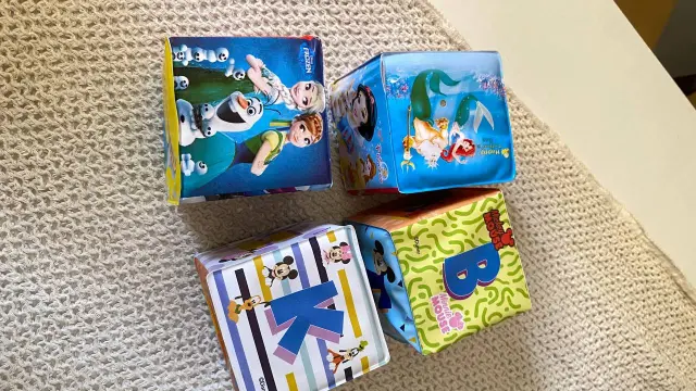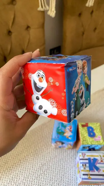 كل مكعب عليه رسمة مختلفة تشجع الطفل على اللمس والاستكشاف.