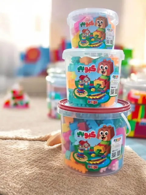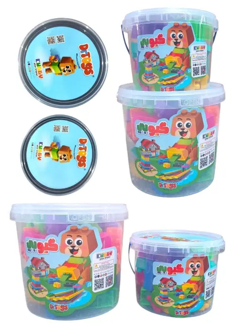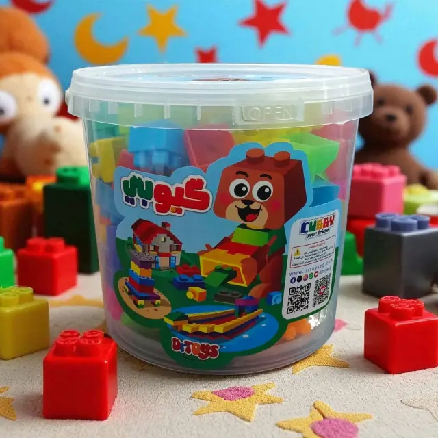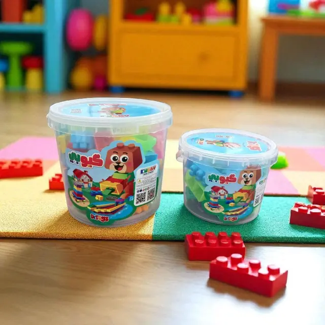 سهولة التخزين: تأتي المكعبات في عبوات (سطل) شفافة قوية بمقابض، مما يسهل على الطفل جمع ألعابه وتنظيم غرفته بعد الانتهاء.